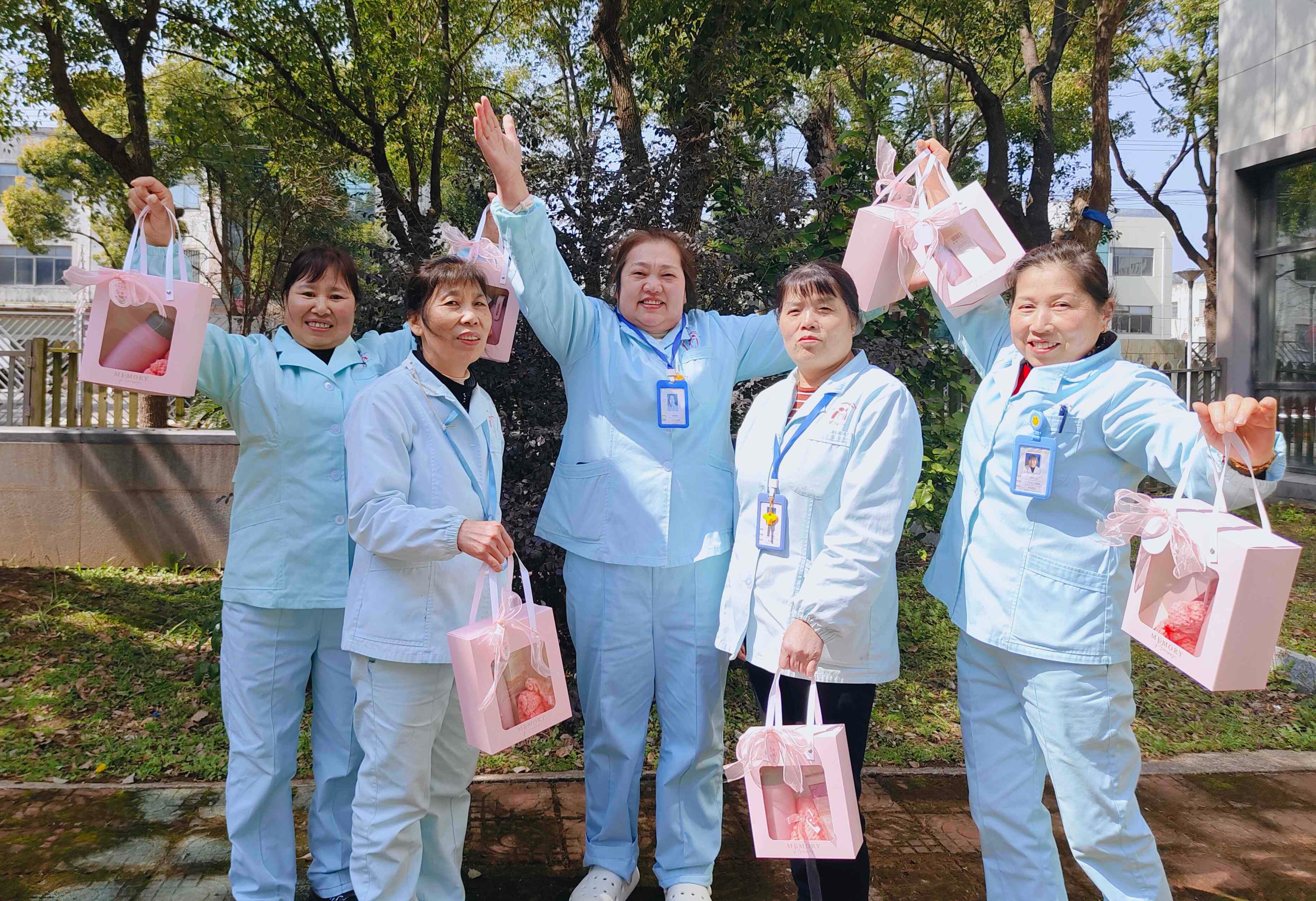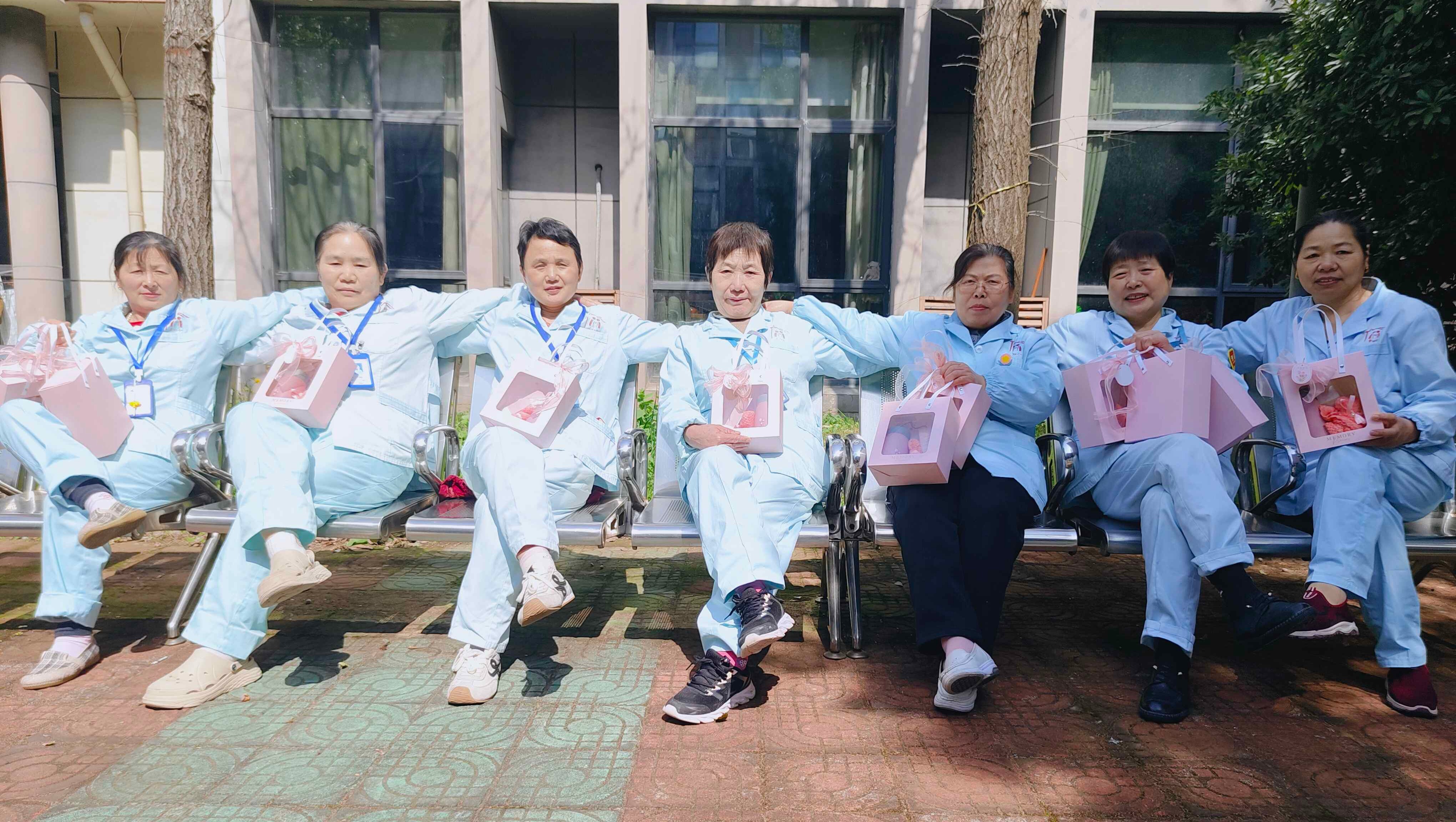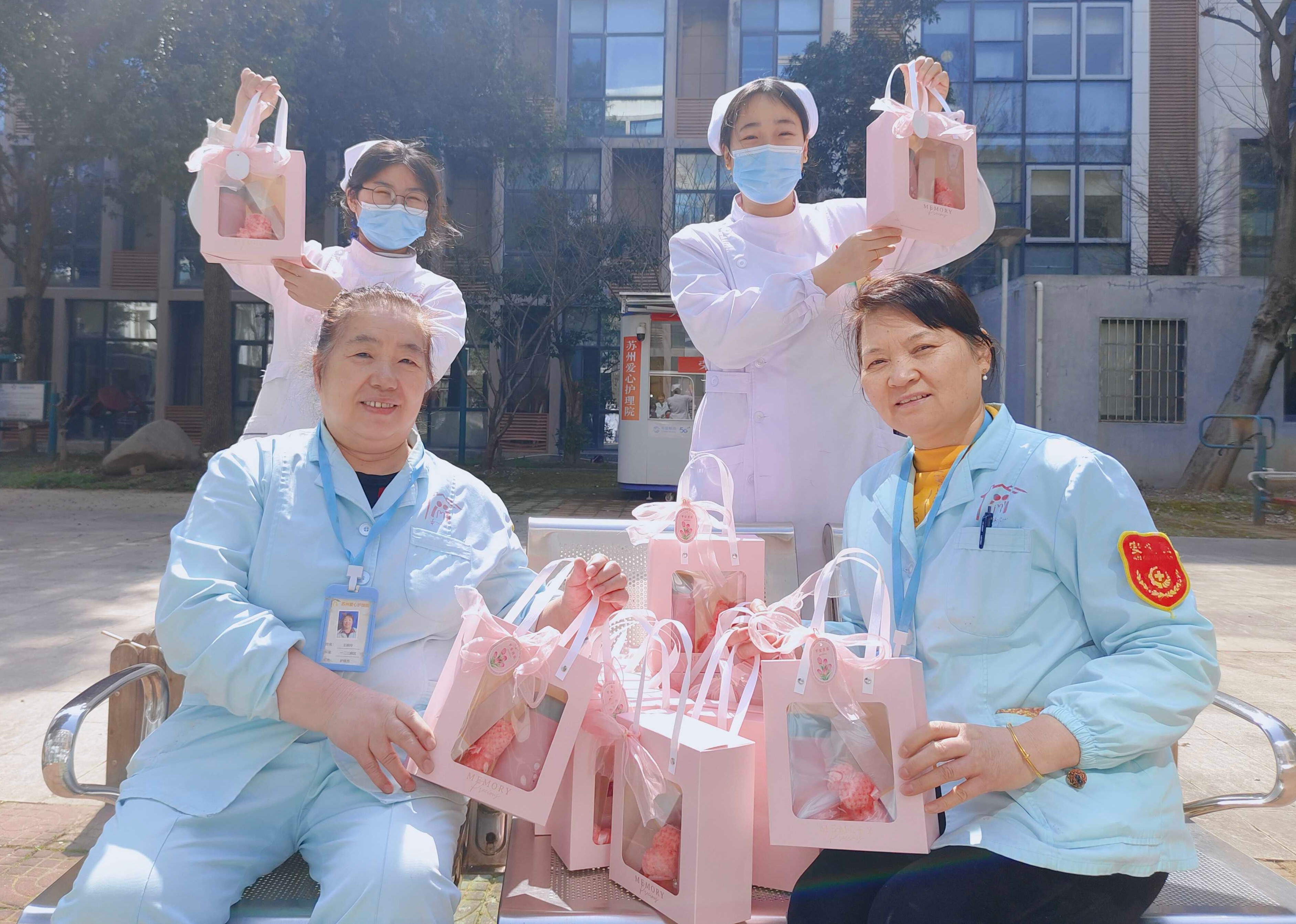 因此,今年女神节活动主题主打一个快乐减压,怎样让她们快乐呢,护理院用了最为直接且有效的方式——给她们送礼物!今年我们把节日花束换成了更为实用的伴手礼套装,收到了大家的一致好评(PS:我们的阿姨们都是务实派)!